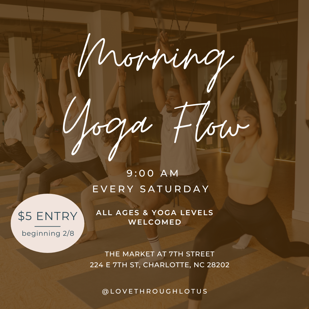 Join Love Through Lotus every Saturday at The Market at 7th Street for a rejuvenating morning vinyasa flow! Take advantage of this sweet chance to start your weekend off with connecting breath to movement to awaken your body and mind. Bring your mat and anything else you need to feel complete during this energetic flow, suitable for all ages and practice levels.
