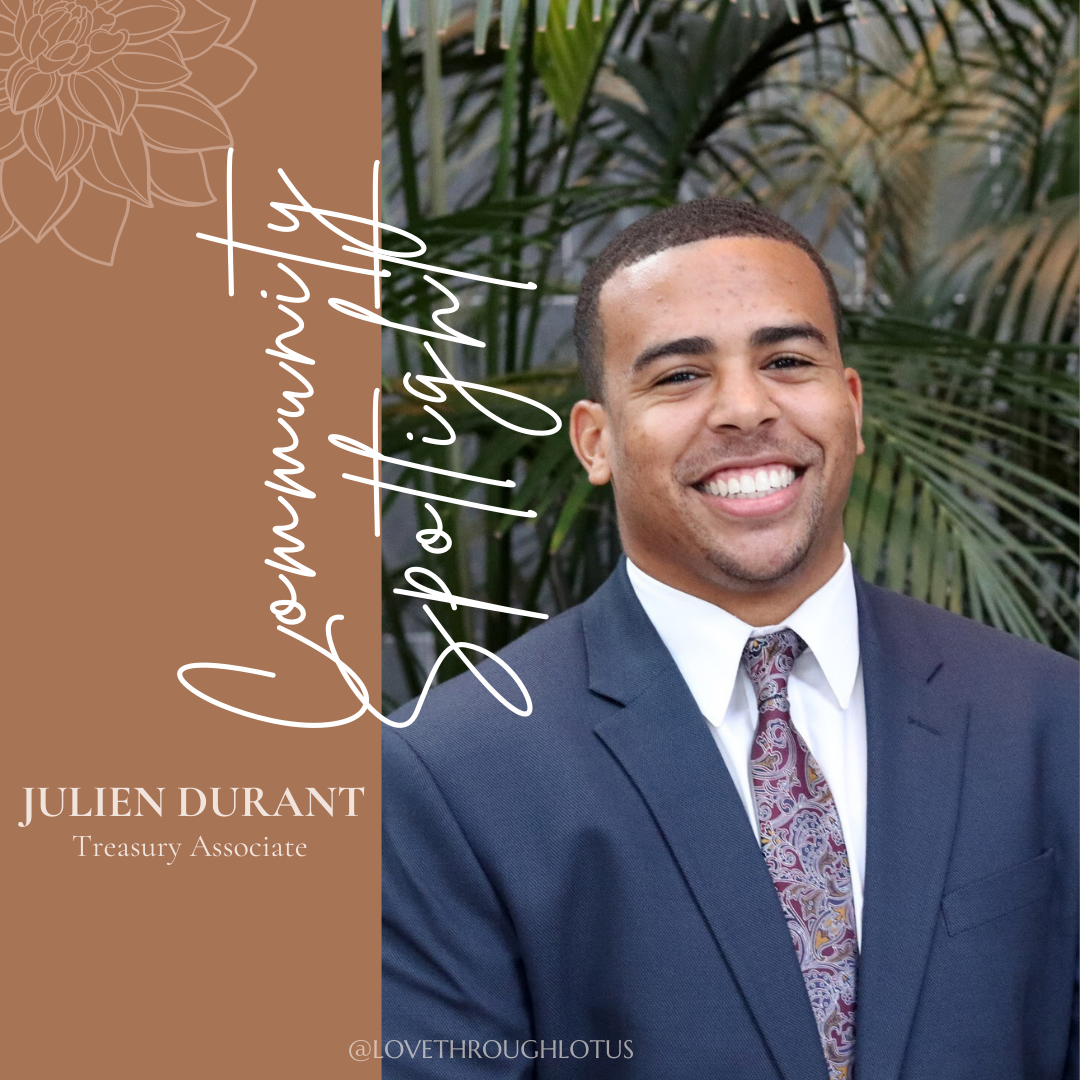 As we wrap up this amazing year, meet our final community spotlight of 2024, Julien Durant! Julien is a Treasury Associate by day, volunteer football coach and local high school mentor at the Charlotte YMCA. Some of Julien’s favorite acts of self care include exercising daily to relieve the stress from the work day, finding new walking trails with his dog, Queen, and making music beats to promote creativity!